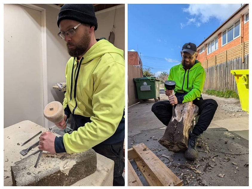 Yesterday, I embarked on my first wood carving experience. Working with the wood outdoors was not just a creative endeavour, but a deeply personal and relaxing one. The natural environment seemed to enhance the connection between the material and the craft, making each cut and curve feel more intuitive and meaningful. This initial experience allowed me to appreciate the organic beauty of wood and the centuries-old tradition of transforming it into art.
