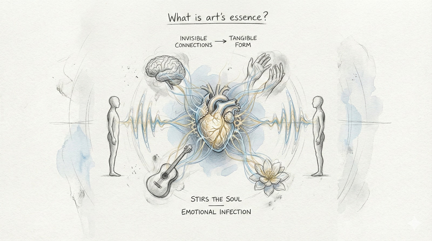 The essence of art is combining the invisible connections of human experience into something tangible that stirs the soul.